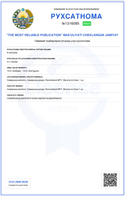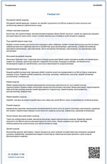 NASHRIYOT LITSENZIYASI